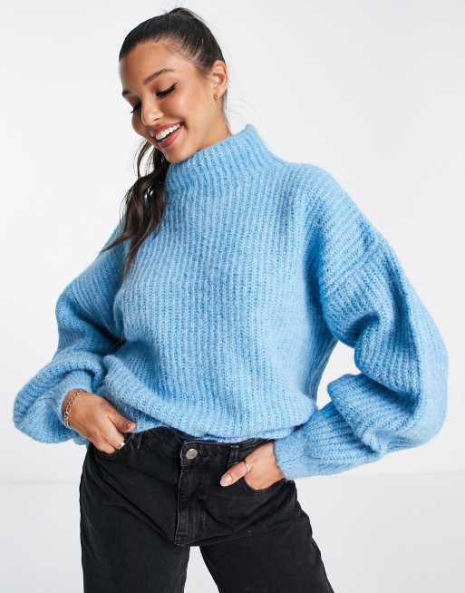 ASOS DESIGN high neck jumper in fluffy yarn in blue ASOS Very well made.