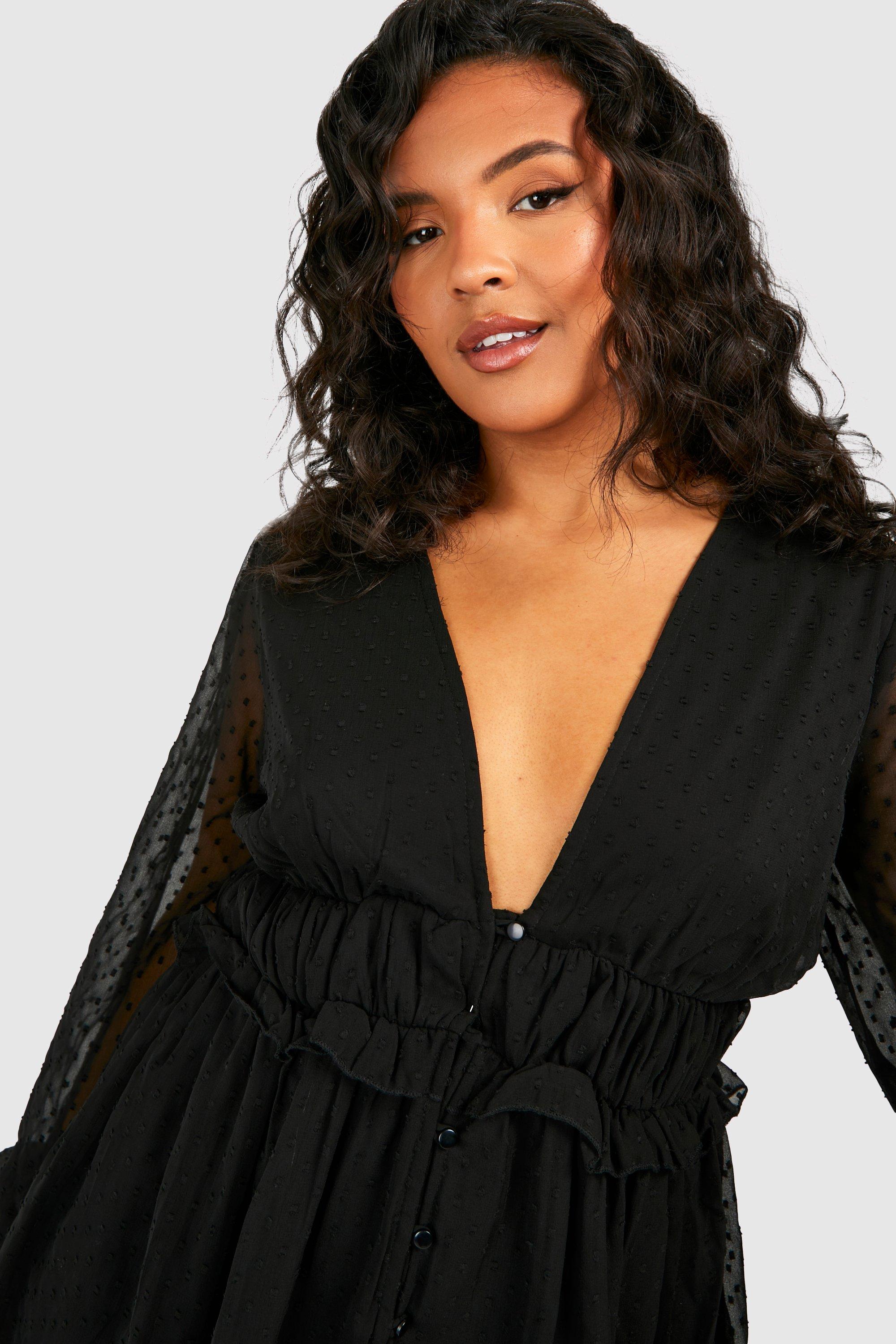 Plus Dobby Mesh Ruffle Smock Dress boohoo Very well made.