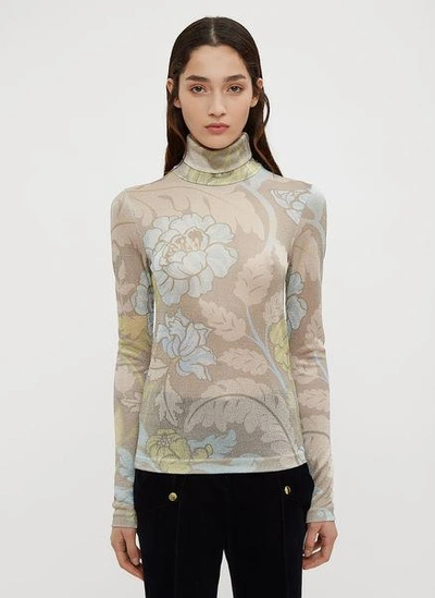 Floral Lurex Turtleneck Top In Blue In Multi Very well made.