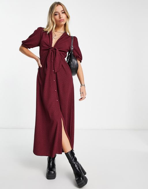 ASOS DESIGN tie front button up midi dress in burgundy dot Very well made.