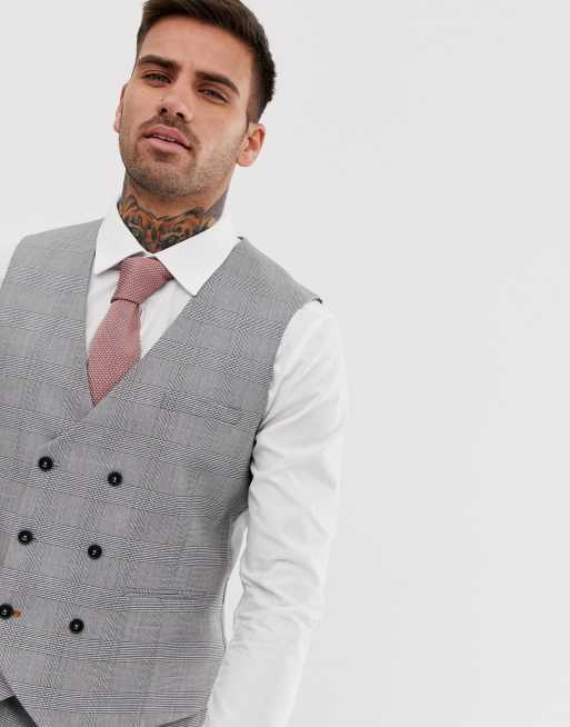 Suits Skinny Fit Grey Blue Pow Check Waistcoat Burton Very well made.