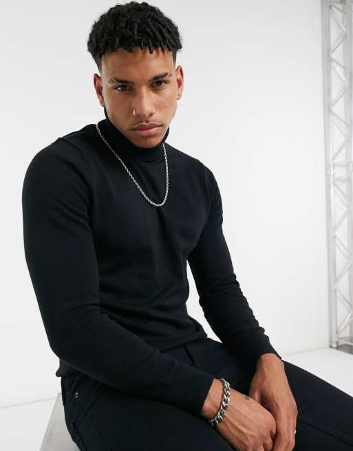 Burton Menswear cotton blend knitted roll neck jumper in black Very well made.