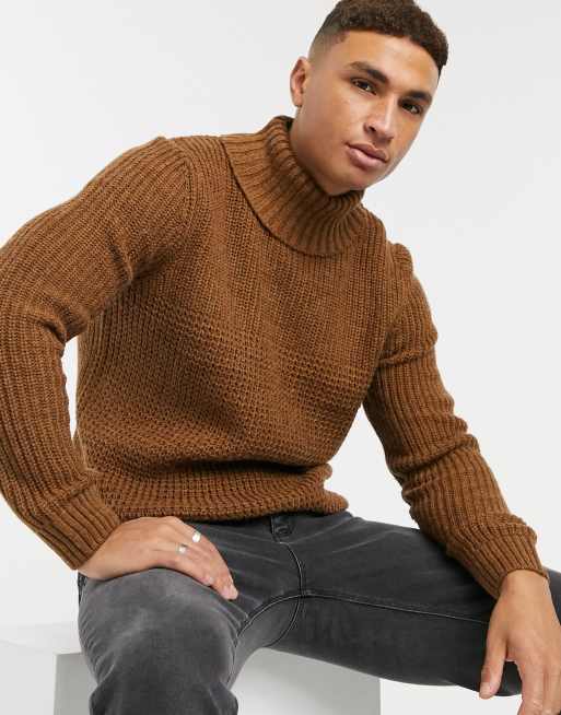 Burton Menswear knitted chunky roll neck jumper in tobacco Very well made.