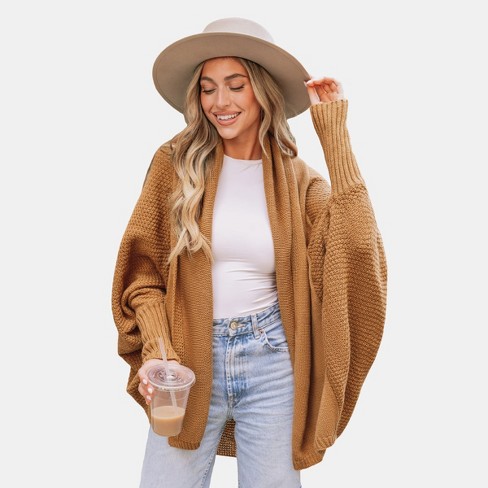 Women s Camel Textured Knit Open front Cardigan Cupshe xs brown Very well made.