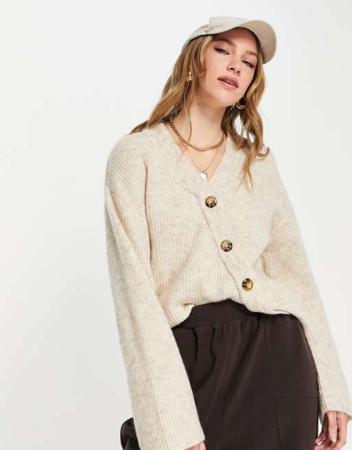 NA KD polyester asymmetric knitted cardigan in beige melange BEIGE Very well made.
