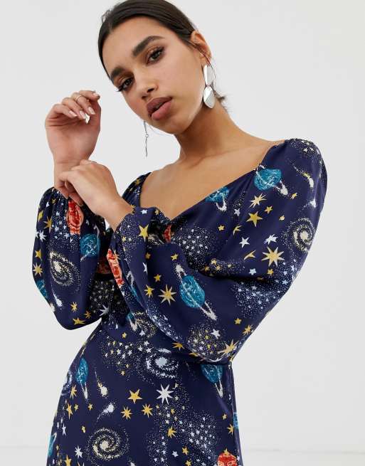 Celestial Printed V Neck Plunge Midi Dress Very well made.