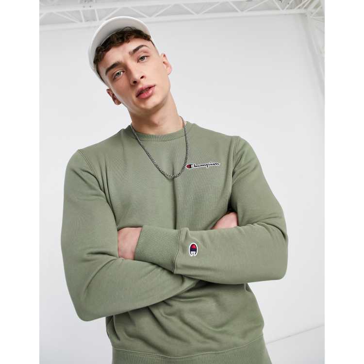 Champion small script logo sweatshirt in khaki Very well made.