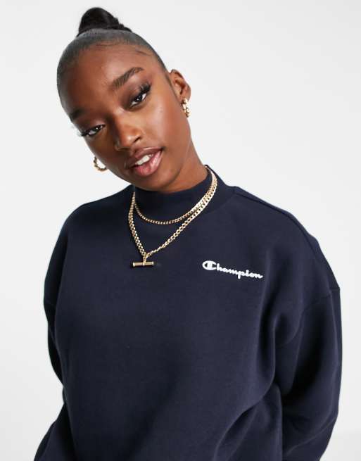 Champion small logo cowl neck sweatshirt in navy exclusive to asos Very well made.