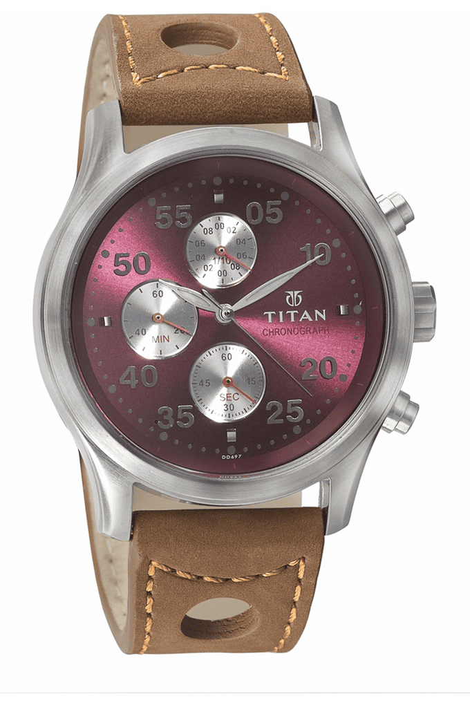 Buy Online Titan Chronograph Brown Dial Leather Strap watch for Very well made.