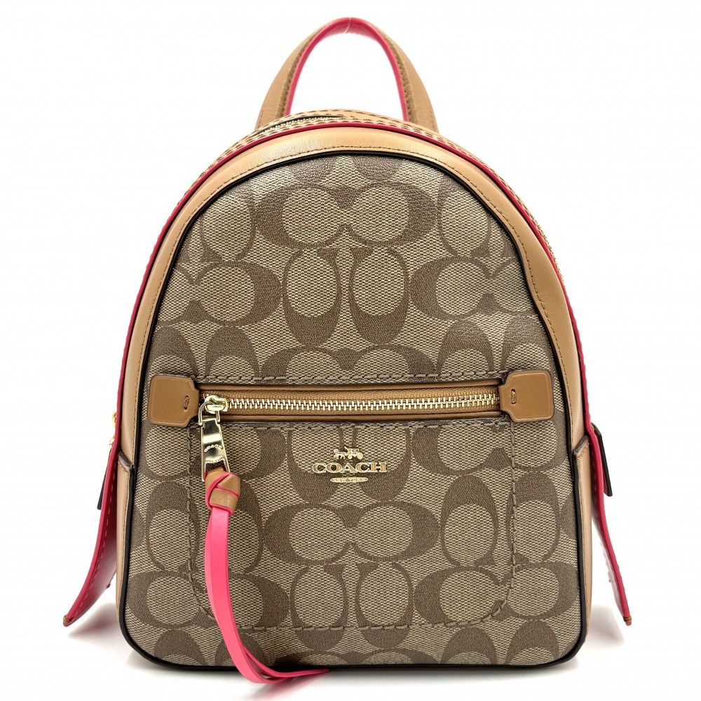 COACH Backpack Signature F38998 Dark Brown Neon Light Green PVC Leather Women s Very well made.