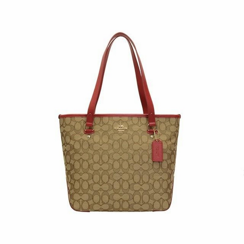 Coach Outline Khaki Teal Trim Signature Zip Top Tote Purse Handbag F1657 F55364 Very well made.