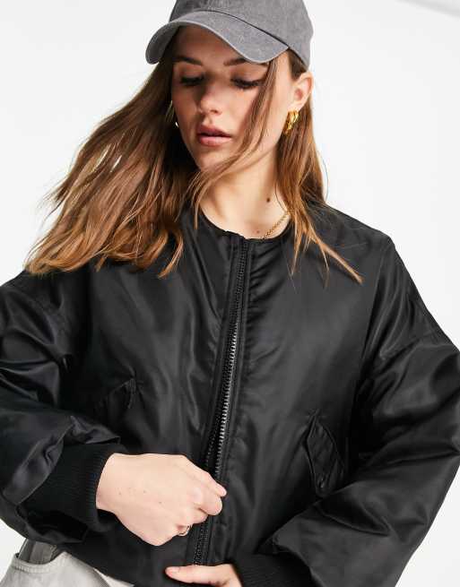 ASOS Collarless Bomber Jacket In Navy Very well made.
