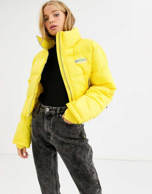 Pull Bear cropped puffer jacket with badge in yellow Very well made.