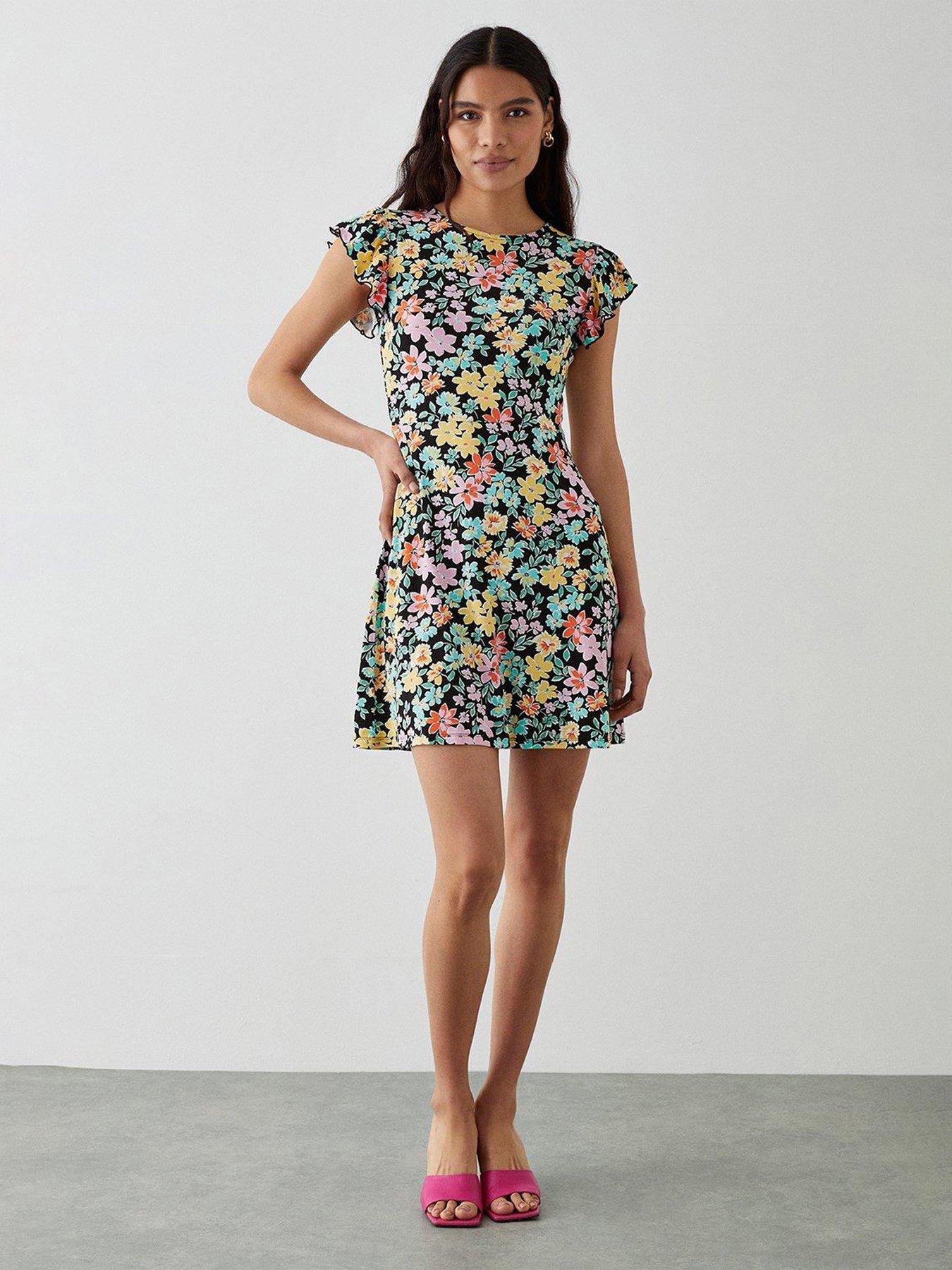 Dorothy Perkins Floral Ruffle Shoulder Mini Dress Multi Very Very well made.