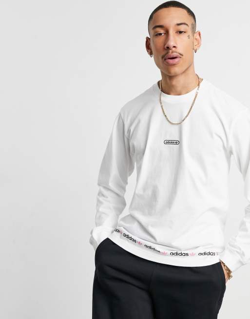adidas Originals linear repeat logo long sleeve t shirt in white Very well made.