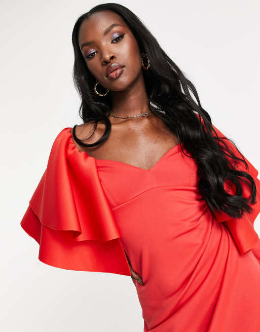 ASOS DESIGN extreme ruffle shoulder midi dress in hot red Very well made.