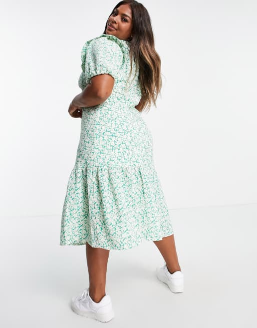 Fashion Union Plus maxi tea dress in green floral with ruffle sleeves Very well made.