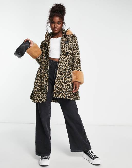Miss Selfridge leopard duffle swing coat with fur hood Very well made.