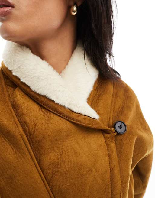TOPSHOP Faux Suede Shearling Hooded Cropped Car Coat With Borg Very well made.