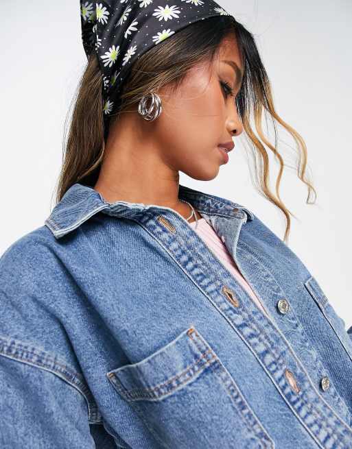 Topshop Shacket Raw Hem in Mid Blue wash Very well made.