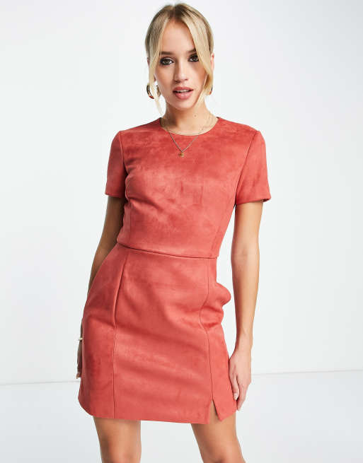 French Connection short sleeve fitted mini dress in red suedette Very well made.