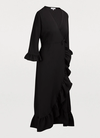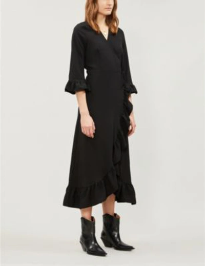 Ganni Clark Ruffled Crepe Wrap Midi Dress In Black ModeSens Very well made.
