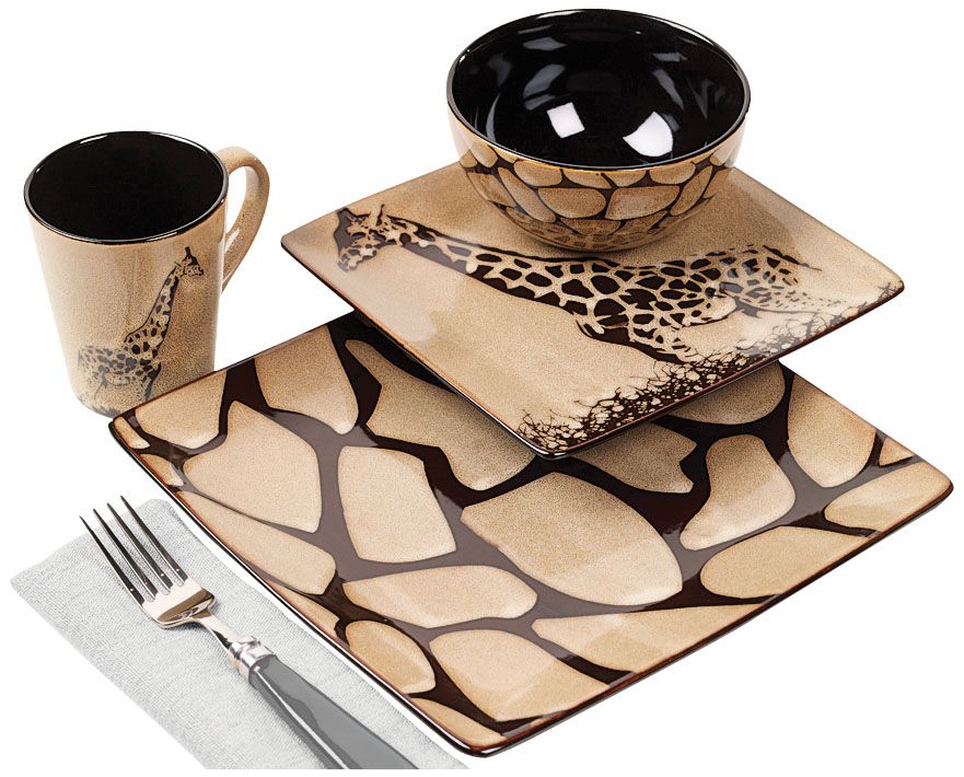 Safari style dishware Overstock This Giraffe 16 piece Very well made.