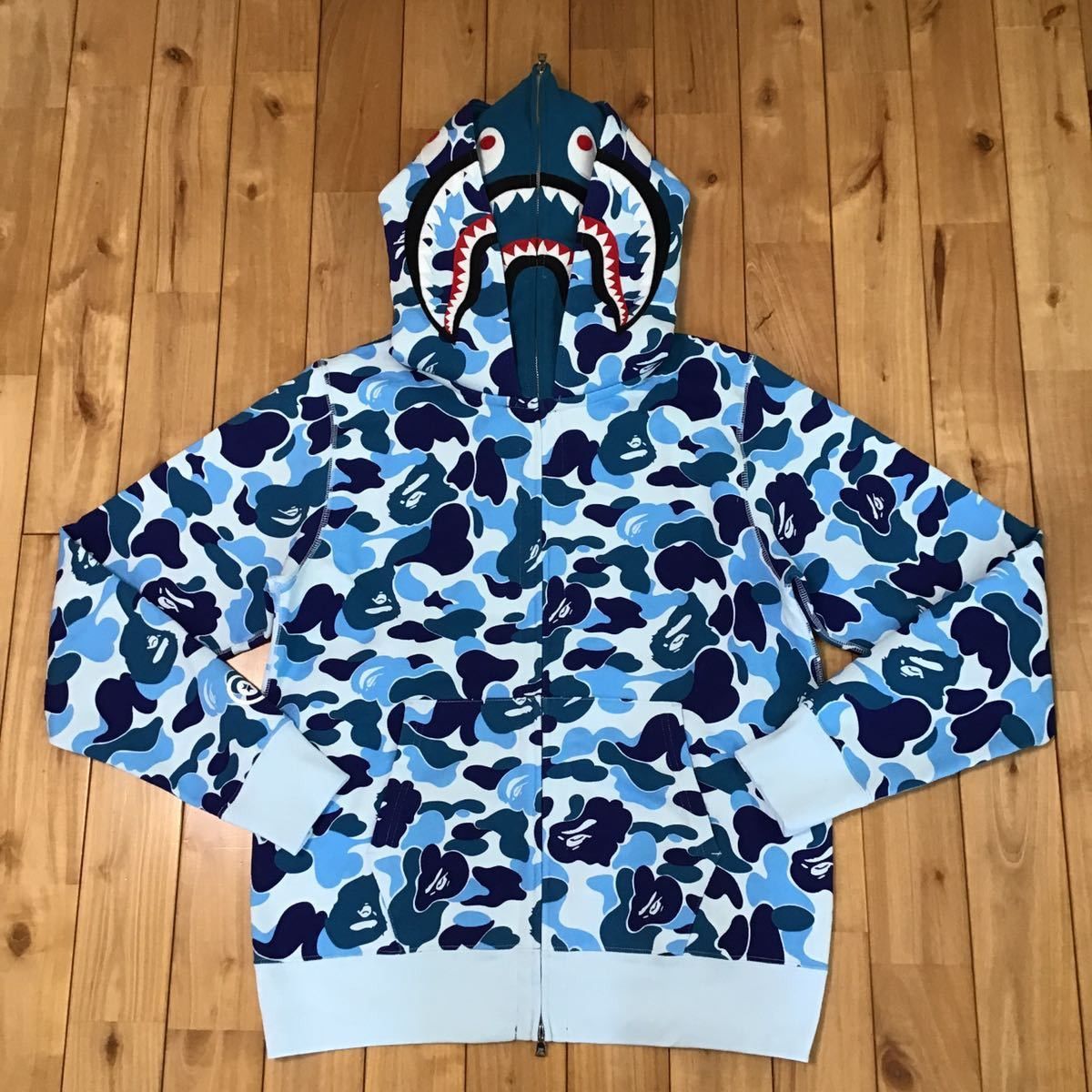 Bape BAPE Double shark full zip hoodie ABC camo blue Grailed Very well made.
