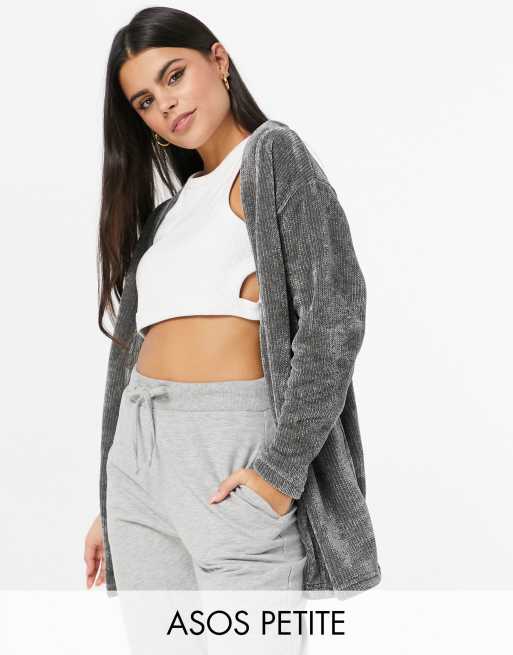 ASOS DESIGN Petite exclusive lounge co ord chenille cardigan in dark gray Very well made.