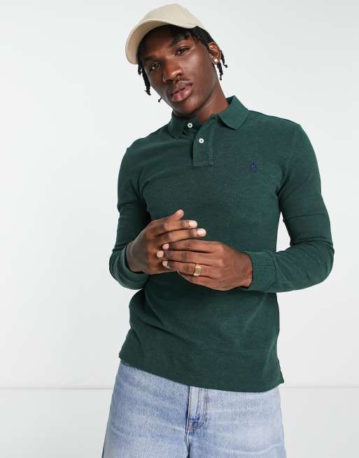 Polo Ralph Lauren icon logo slim fit long sleeve pique polo in dark green heather Very well made.