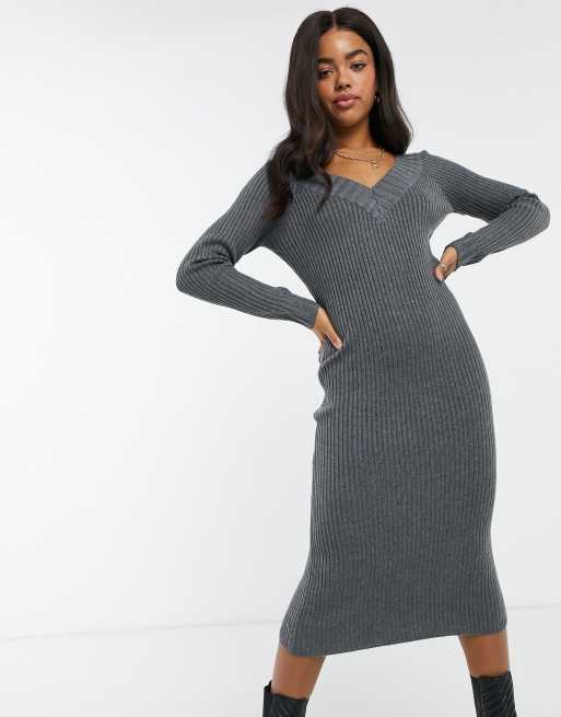 Grey V Neck Knit Midi Dress Very well made.