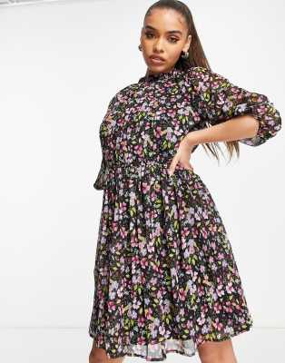 NA KD high neck elastic waist puff sleeve dress in pink floral ASOS Very well made.