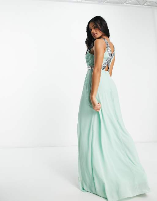 TFNC Bridesmaid high neck embellished chiffon maxi dress in sage green Very well made.