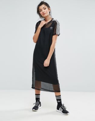 adidas Originals Black Midi Dress With Sheer Mesh Overlay Very well made.