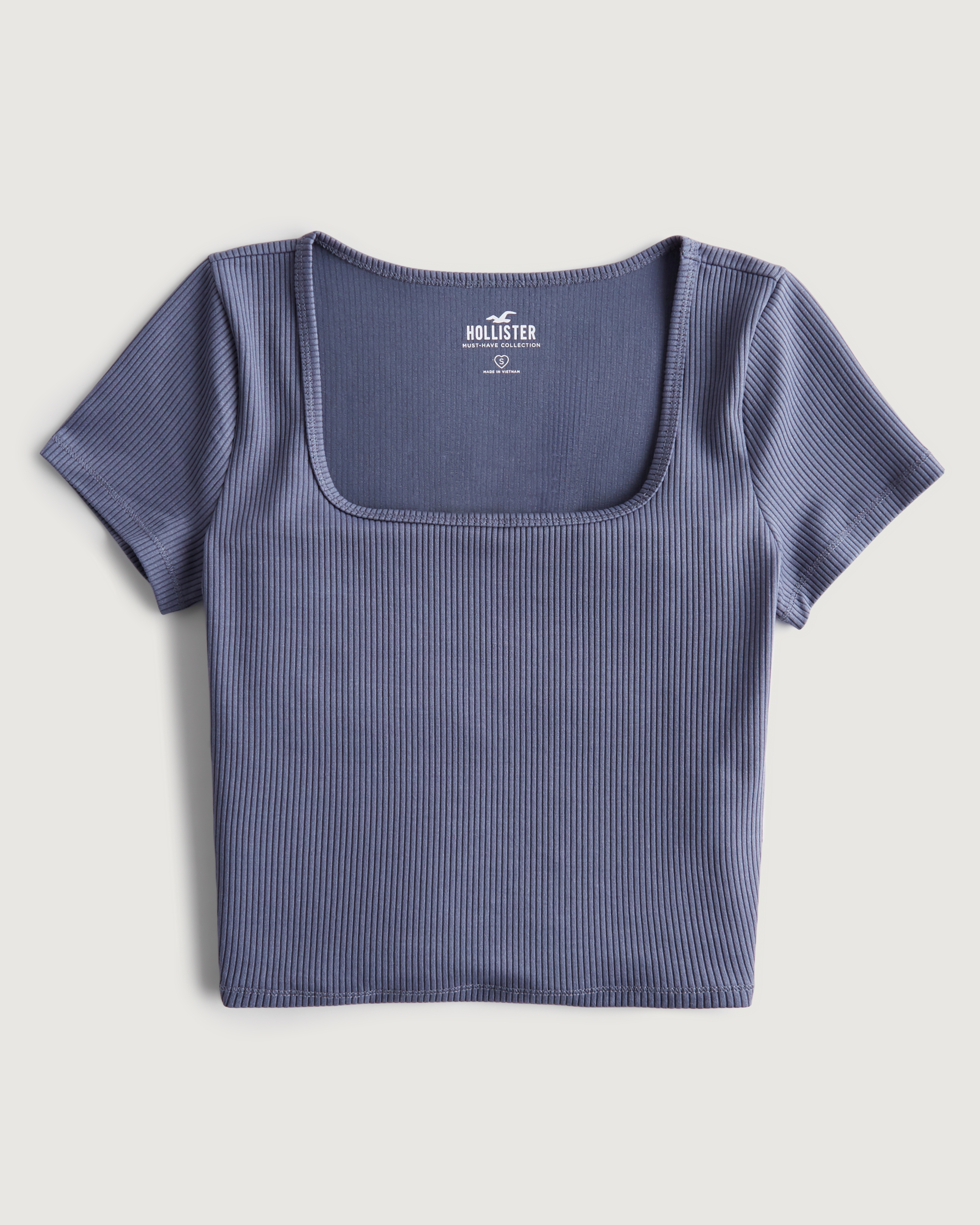Women s Seamless Rib Fabric Square Neck Baby Tee Women s Very well made.