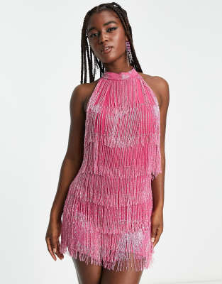 Siofra Mini Dress Zig Zag Fringe Dress in Hot Pink Very well made.