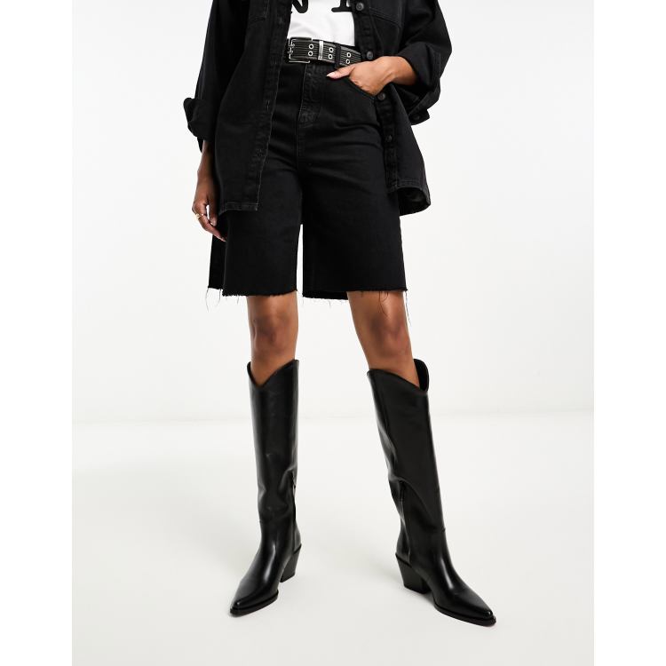 Other Stories leather low heel western thigh boots in black ASOS Very well made.