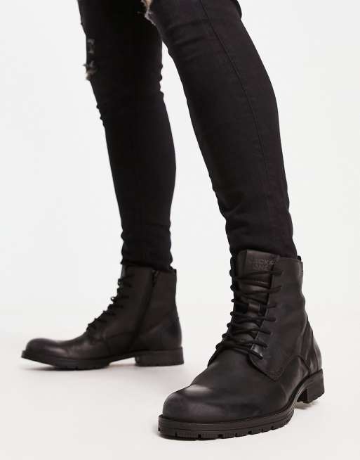 Jack Jones leather lace up boot with side zip in black ASOS Very well made.