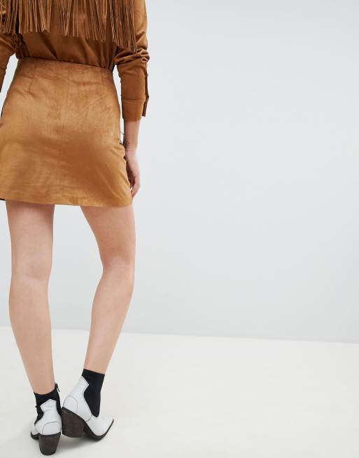 Capsule jupe d ensemble en daim marron Mango en coloris Very well made.