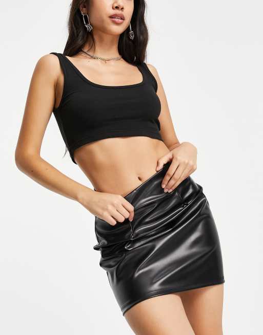 ASOS DESIGN leather look seamed super mini skirt in black Very well made.