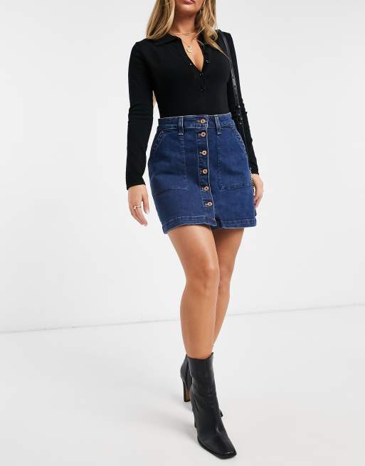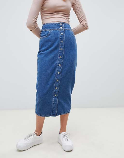 ASOS DESIGN denim midi skirt with poppers in midwash blue Very well made.