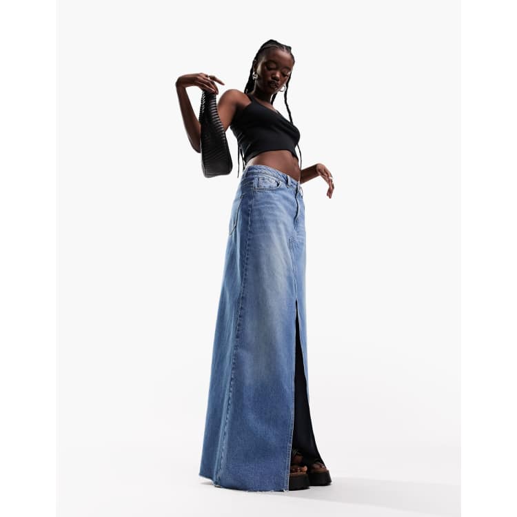 ASOS DESIGN Jupe longue l g re en jean fendue sur le devant Bleu Very well made.