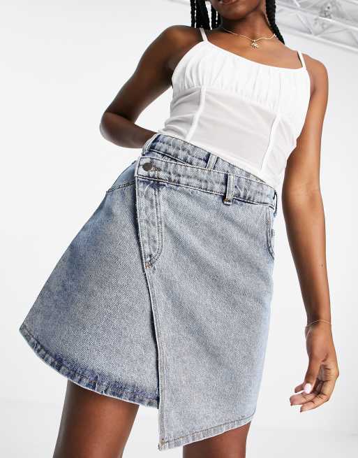 I Saw It First Mini jupe asym trique en jean Bleu d lav clair Very well made.