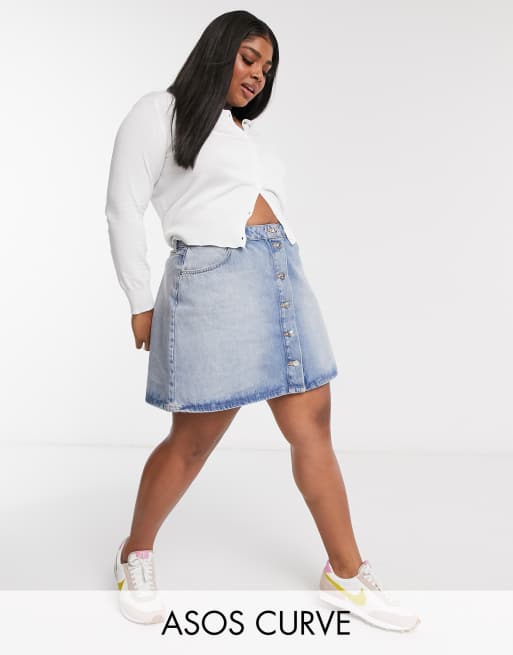ASOS DESIGN Curve Jupe en jean boutonn e D lavage clair Very well made.