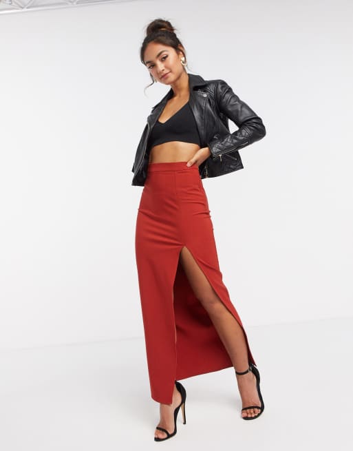 ASOS DESGIN Jupe longue fendue sur la cuisse Rouille Very well made.