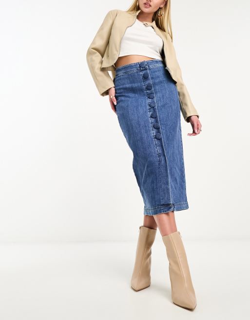 Elvi Jupe fourreau mi longue boutonn e en jean Bleu ASOS Very well made.