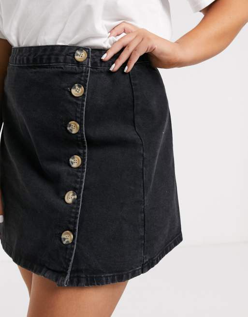 ASOS DESIGN Curve Jupe portefeuille en jean avec bouton sur le c t Noir Very well made.
