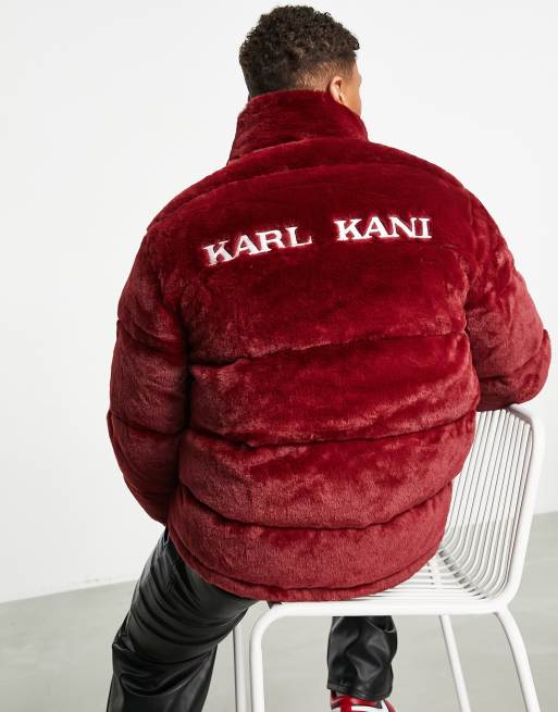 Karl Kani faux fur puffer jacket in burgundy Very well made.