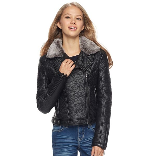 Juniors J 2 Faux Fur Trim Textured Faux Leather Jacket Very well made.