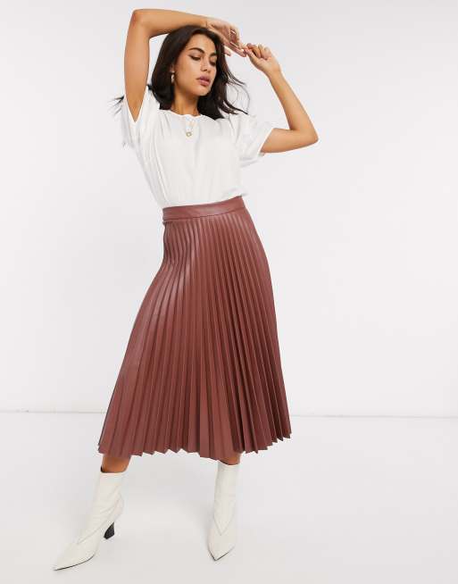 Stradivarius faux leather pleated midi skirt in rust Very well made.